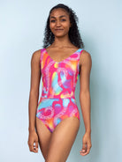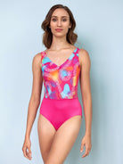 1994 Hot Skate features a retro print designed exclusively for Suffolk by our in-house graphic artist. This pinch front tank has a low 'V' back and diagonal side seams for a flattering line.