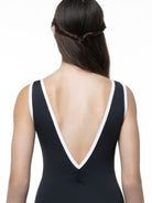 Empire bateau neck leotard with low pinch back.