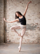 Suffolk® Stage™ Tights provide extreme comfort for the dancer. They are designed to eliminate the harsh waistband line that often shows through a leotard or costume, and smooths the look of bodices. The low rise waistband is similar to that of a yoga pant, and is perfect for dancers to wear over their leotards for class or rehearsal. The Stage™ tight is the only tight in the dance market to be knitted in an exclusive way that eliminates the need for a gusset, ensuring a clean line. The 70 denier fabric is finished with the same softener and aloe as our other Suffolk tights. Dancers will wear one size up from their Suffolk leotard.