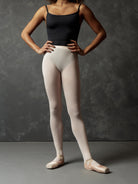 Suffolk® Ultimate tights are seamless and 100% run proof. They are designed in a way that if they are snagged, they will get a hole, but it will never run down the leg as can happen with traditional tights. The Ultimate Tight also features a unique non-sewn, bonded waistband for added comfort and invisibility under leotards. The 80 denier fabric is one of the softest tights in the dance market. Dancers will wear the same size as their Suffolk® leotard.