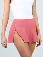 Pull-on ribbed skirt with waistband and split hem detail.